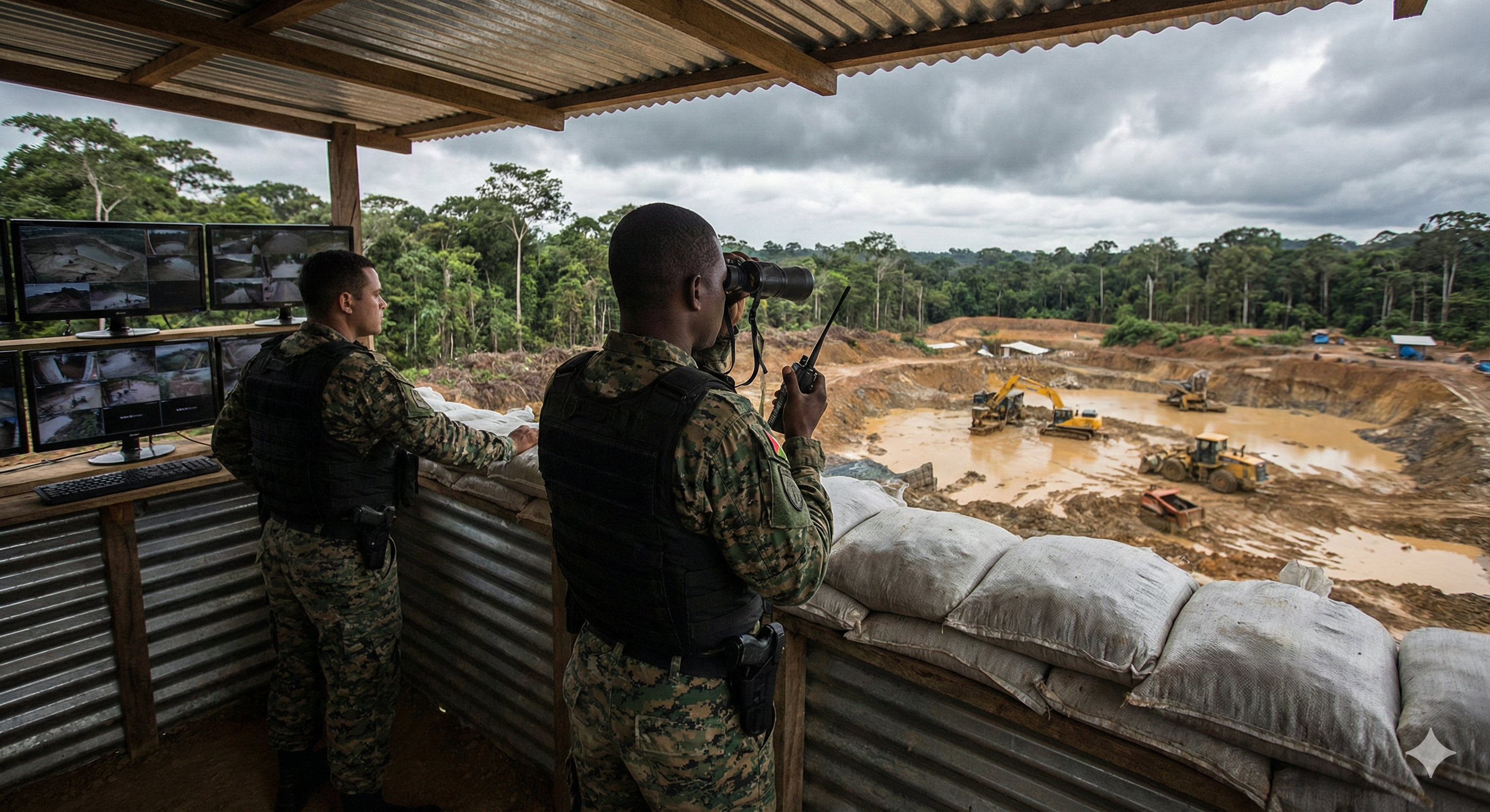 Protection des zones de stockage : Surveillance armée des coffres et des zones où le minerai précieux est entreposé avant son transfert.